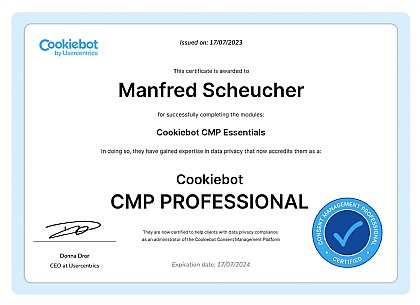 Sollten Sie noch keine Cookie-Blockierung auf Ihrer Website verwenden, können Sie Ihr kostenloses CookieBot-Konto direkt anmelden unter